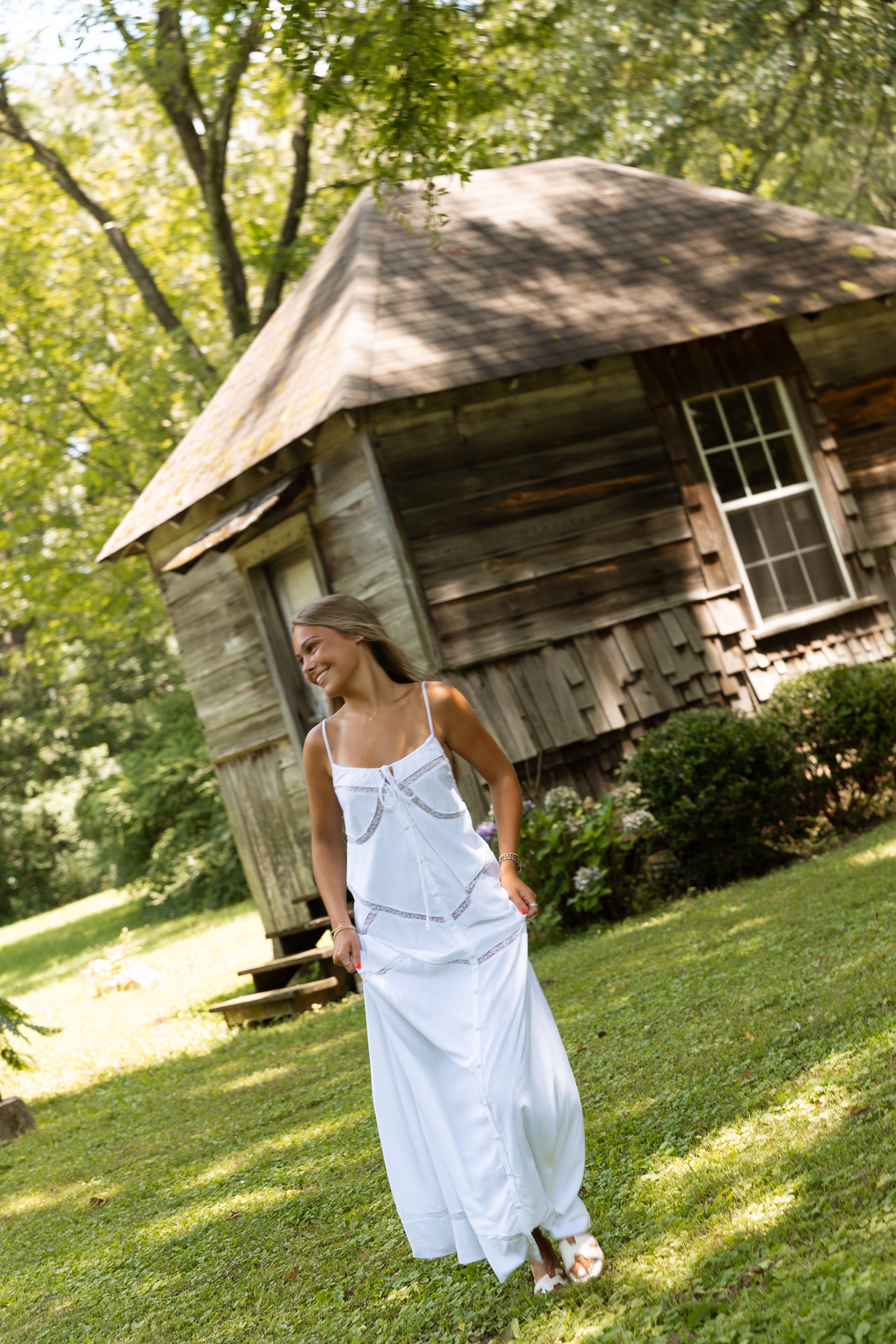 Step into effortless elegance with the Alys Linen Lace Maxi Dress. This breezy maxi features delicate lace inlays that add a touch of elegance and charm, perfect for sunny days and moonlit nights. Crafted from breathable linen, it keeps you cool while turning heads with its playful, flowing silhouette. Whether you're strolling the beach or dancing at a garden party, this dress brings a fresh, flirty vibe to your wardrobe.