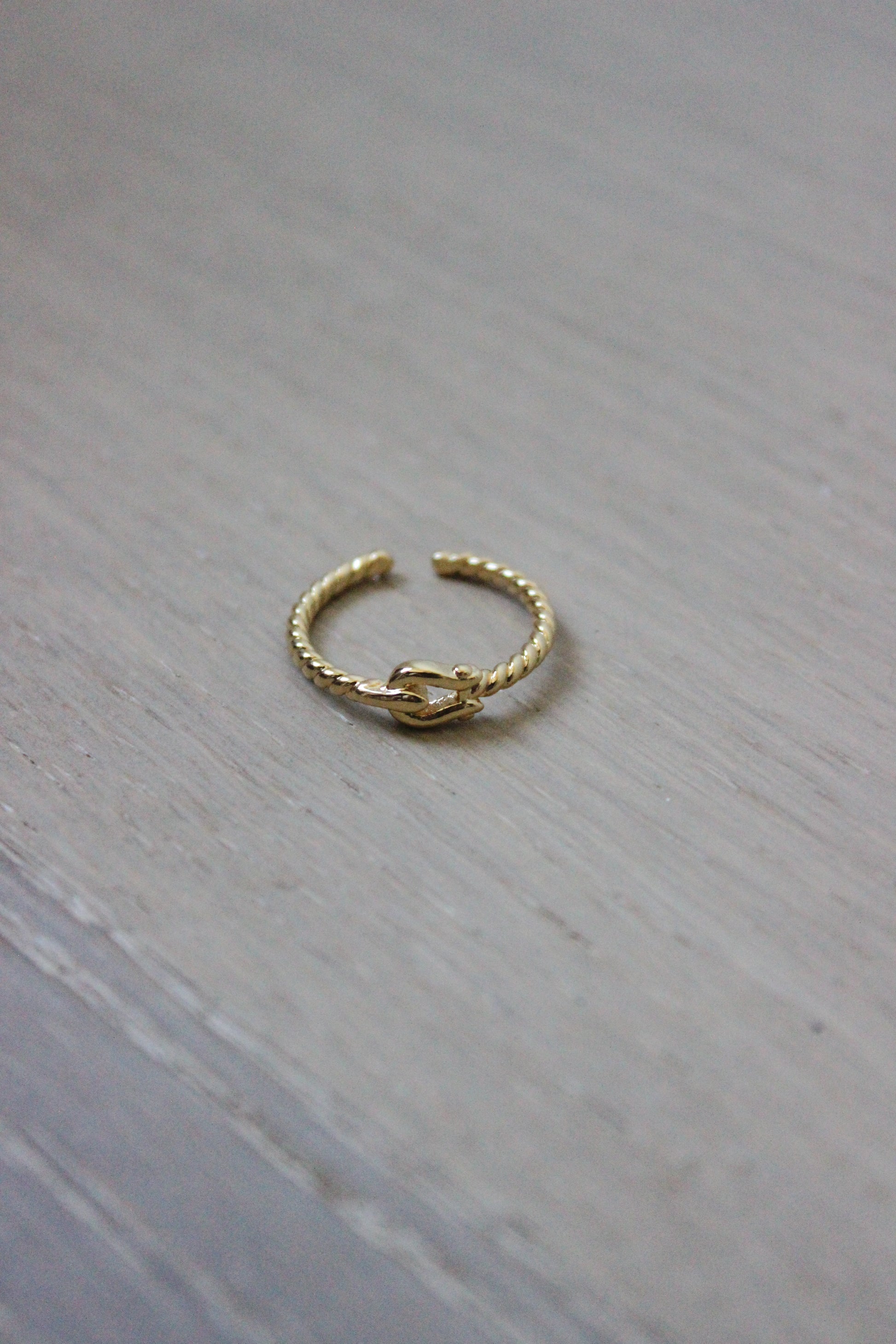 Add some personality to your outfit with the Belt Buckle Ring! This quirky and dainty ring is nickel free and features adjustable sizing for a perfect fit. Stand out from the crowd with this fun and stylish accessory.