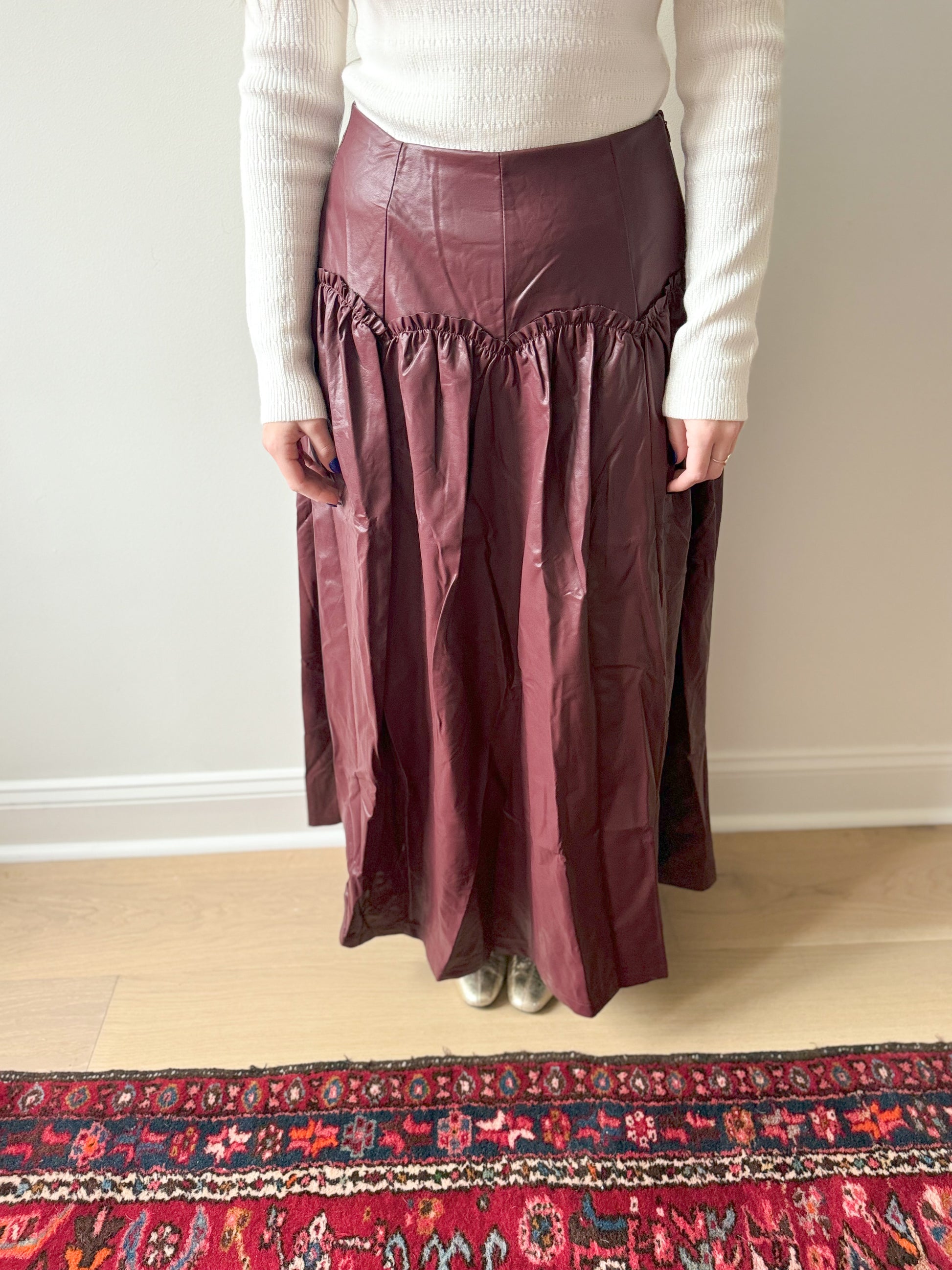 Josie Faux Leather Skirt in Cherry Mocha