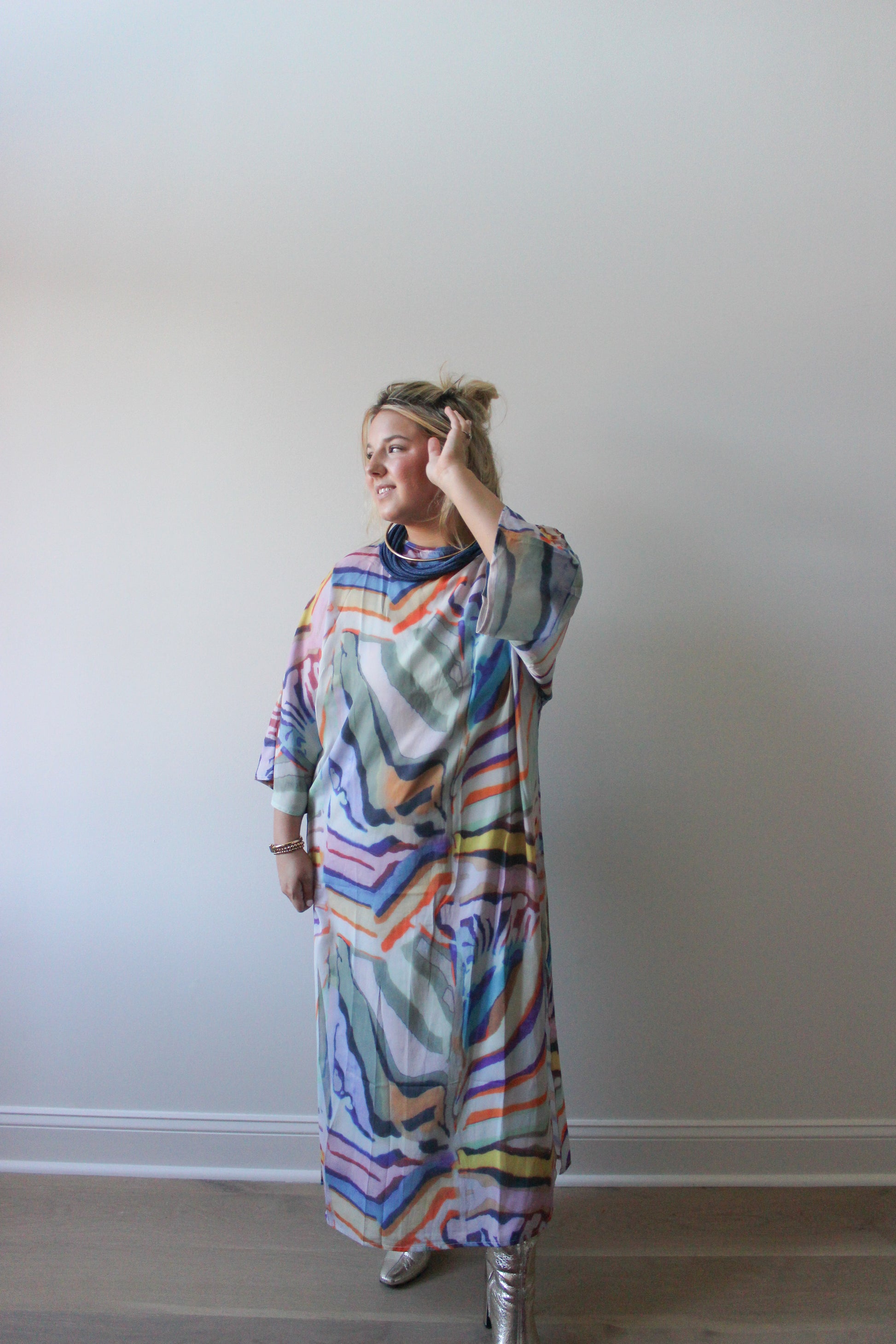 The Go Lucky Zebra Maxi Caftan is the perfect combination of fun and bold. With a playful caftan design, it's perfect for those who don't take themselves too seriously. Stand out and make a statement with this quirky and unique dress! Runs oversized!